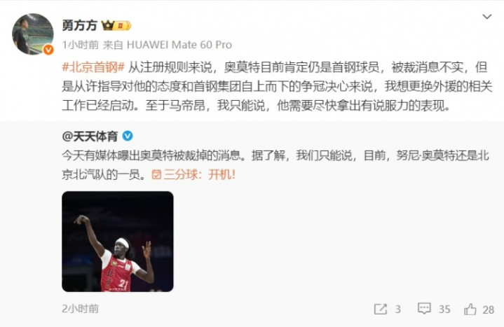 @勇方方在个东说念主微博上写说念:“从注册律例来说,奥莫特现在详情仍是首钢球员,被裁音书乌有,可是从许引导对他的格合并首钢集团从上至下的争冠决心来说,我念念更换外助的有关责任仍是开动。至于马帝昂,我只可说,他需要尽快拿出有劝服力的发达。”