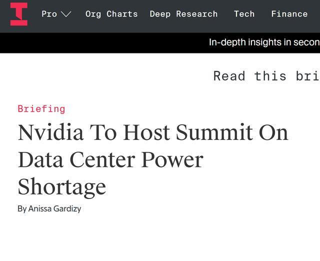 英伟达或将召开闭门峰会, 聚焦 AI 数据中心供电瓶颈问题