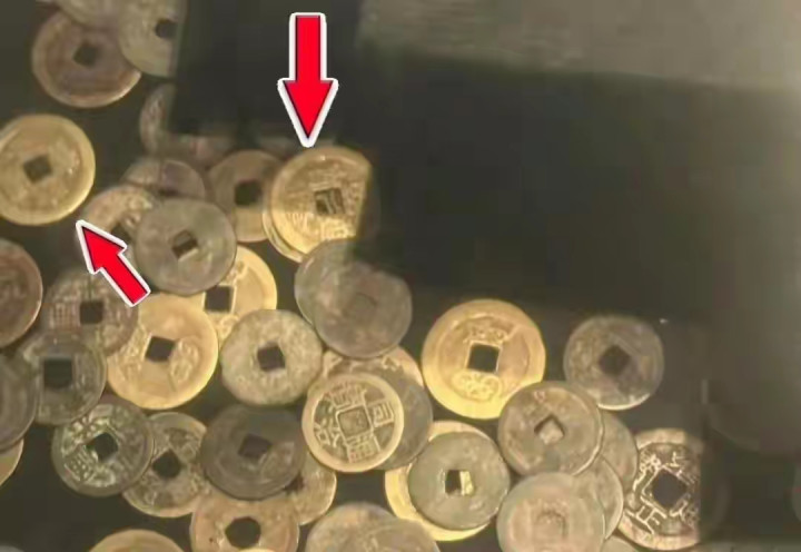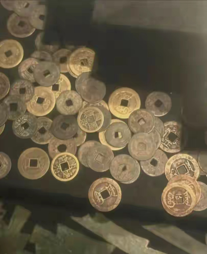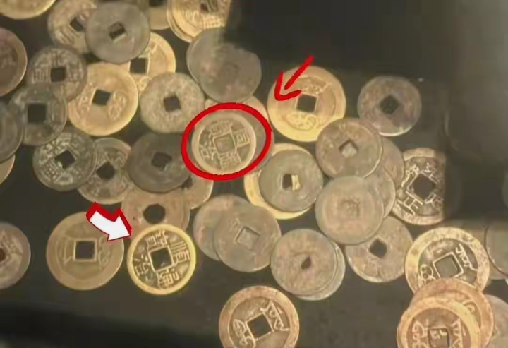懂行的网友一眼就发现了问题:中间那排"顺治通宝""康熙通宝""雍正通宝""乾隆通宝",看着就辩认劲。顺治到同治隔着两百多年,每个朝代的钱币锻造工艺、钱文作风都该有显然区别,可展柜里的这些铜钱,钱径大小差未几,字体简直一个模型刻出来的,整皆得过分违和。更显然的是细节,后面的满文细节对不上号,边口还有机械加工的印迹,十足莫得古钱翻砂锻造后手工修整的当然质感,反倒像旅游景点里论斤卖的牵挂币。